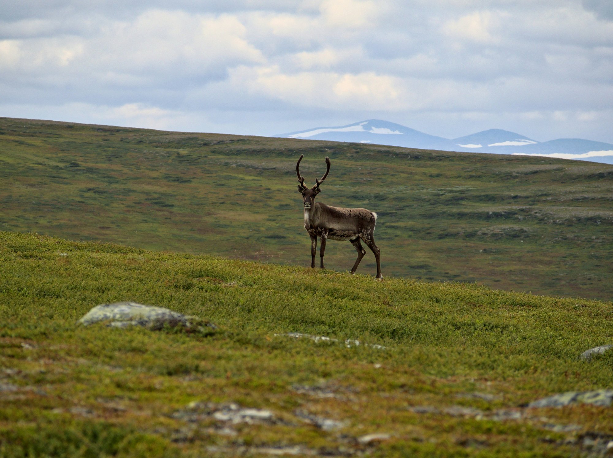 In Lapland, reindeer are simply part of the landscape in all four seasons. In winter, herds gather around wind-blown ridges where snow cover is thin enough to dig through to the lichen beneath, and are often encountered on roads and trails around Abisko, Kiruna and Jokkmokk. In summer, herds move to higher mountain terrain and are a constant presence on the Kungsleden trail and the mountain pastures of the Scandinavian range. The animals show no particular fear of people — they have lived alongside Sami herders for thousands of years — but they don't seek contact either. They exist in a kind of parallel world that occasionally intersects with yours.